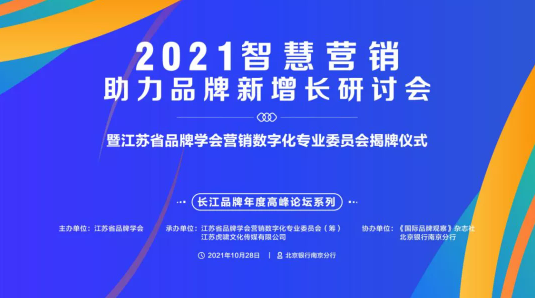 10月28日下午,由江苏省品牌学会主办,江苏省品牌学会营销数字化专业委员会、江苏虎啸文化传媒有限公司承办,《国际品牌观察》杂志社和北京银行南京分行协办的2021智慧营销助力品牌新增长研讨会暨江苏省品牌学会营销数字化专业委员会揭牌仪式在北京银行南京分行私人银行中心举行,禁忌书屋 副院长王子龙、MBA教育中心招生与品牌推广办公室蔡雪姣应邀出席,本次揭牌仪式宣告了江苏省品牌学会营销数字化专业委员会的正式成立。