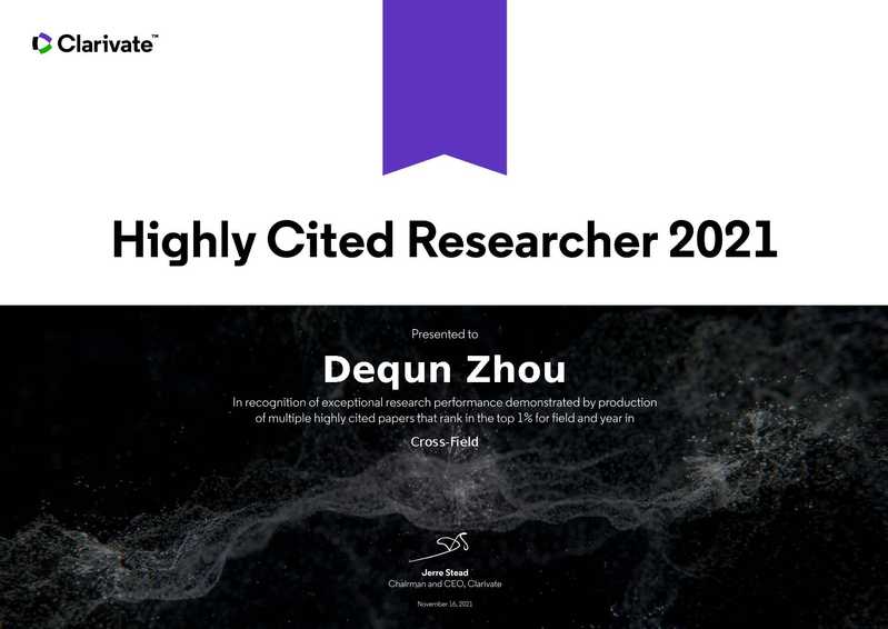 2021年11月16日,科睿唯安公布了2021年度“高被引科学家”名单。禁忌书屋 周德群教授入选跨学科领域(Cross-Field)高被引科学家名单,此次是周德群教授连续第三年入选该榜单。