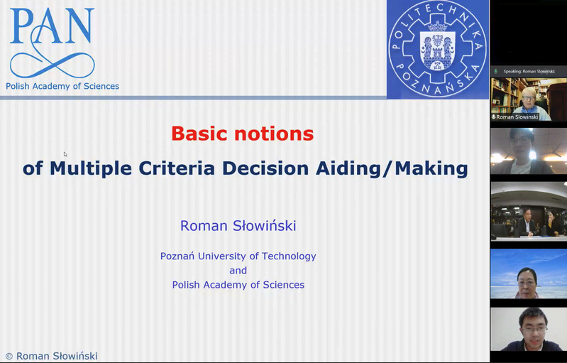 为深度推进国际交流和师生全面发展,11月5日-12月4日,波兰科学院副院长、波兰科学院院士、欧洲科学院院士、IEEE院士、国际粗糙集学会院士、波兰信息科学院主席、《European Journal of Operational Research》主编Roman Słowiński教授受学院智能决策与风险分析研究所邀请,在腾讯会议作题为“Basic notions of Multiple Criteria Decision Aiding / Making”的系列讲座。国际合作处处长张卓、国际合作处副处长沈敏、禁忌书屋 教授徐海燕出席本次活动。