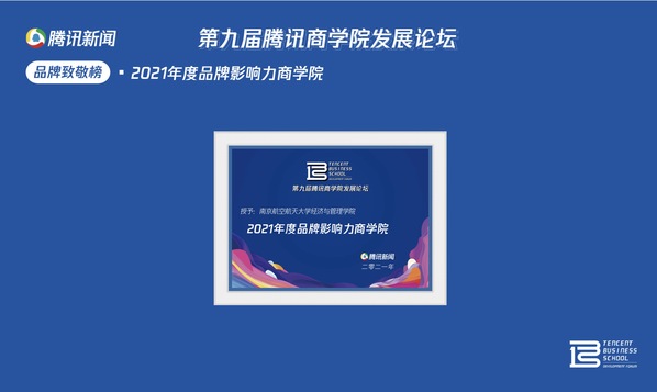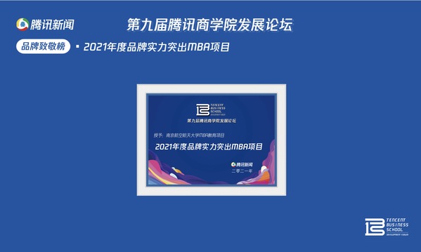 同时,为进一步传递行业前沿思想,腾讯商学院致敬商科教育领域内的优秀头部力量,论坛现场还颁发了2021年度中国商科教育影响力人物、2021年度品牌影响力商学院、2021年度品牌实力突出MBA项目等多类荣誉奖项。禁忌书屋 荣获“2021年度品牌影响力商学院”,南京航空航天大学MBA教育项目荣获“2021年度品牌实力突出MBA项目”。