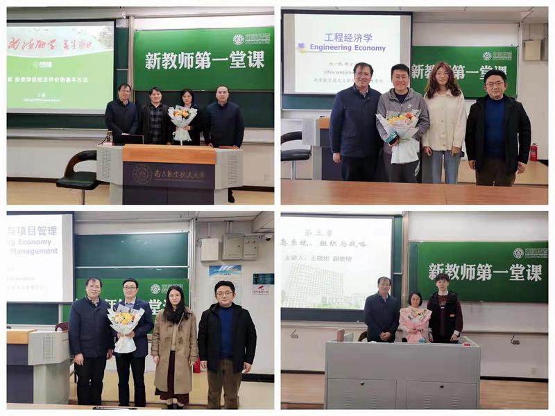 为增强新入职教师对于职业的责任感和使命感,3月7日和3月8日,学院党委书记苏州、院长周德群、副院长邓晶、教学办与学工办相关教师依次为丁浩、杨一帆、董文杰、王筱纶四位新教师进行了新教师“第一堂课”引荐仪式,代表学院全体教师及同学向四位新教师的到来表示热烈的欢迎,并向同学们介绍新教师的个人履历和专业研究等情况。