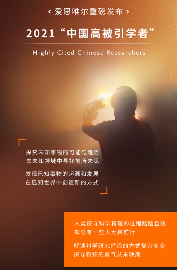 2021年度爱思唯尔“中国高被引学者”榜单以全球权威的引文与索引数据库——Scopus作为中国学者科研成果的统计来源,采用软科(上海软科教育信息咨询有限公司)设计的方法,遴选各学科最具全球影响力的中国学者。