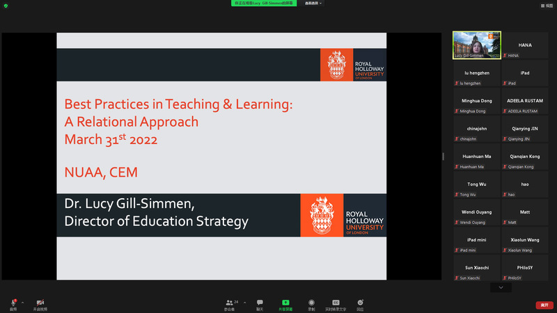 本次讲座为南航-伦敦大学皇家霍洛威学院的“全球战略合作伙伴关系推进计划”的系列活动之一,对青年教师学习先进教学方法,对促进禁忌书屋 与国际教学专家合作交流,以及进一步加深禁忌书屋 加深与伦敦大学皇家霍洛威学院的合作关系有重要意义。