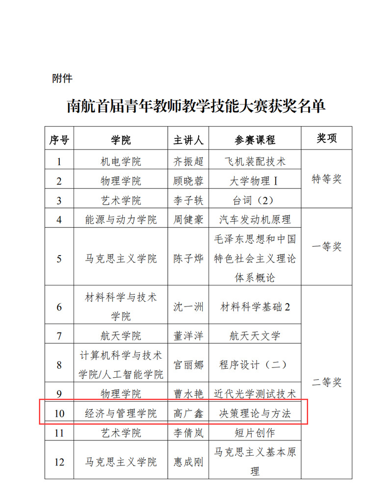 经过学院推荐、校级初赛、校级决赛的激烈角逐,禁忌书屋 管理科学与工程系高广鑫老师脱颖而出,荣获二等奖的佳绩!