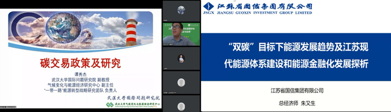 8月16日,武汉大学国际问题研究院谭秀杰副教授围绕“碳交易政策及研究”主题进行授课,分别从碳市场政策体系设计、中国碳市场和碳金融的发展以及对碳市场研究三个方面,讲解了目前碳交易政策研究领域的进展。国信集团战略与投资部总经理朱又生总经济师围绕“‘双碳’目标下能源发展趋势及江苏现代化能源体系建设”主题进行授课,讲解了江苏省的能源发展现状和趋势以及现代能源体系的建设情况,重点分享了大型能源项目的并购案例。