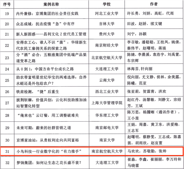 丰超团队撰写的《To B or To C:伊顿纪德的全渠道转型之路》以及马欢欢团队撰写的《小鸟科技——行业数字化的“有力推手”》成功入选“全国百篇优秀管理案例”。
