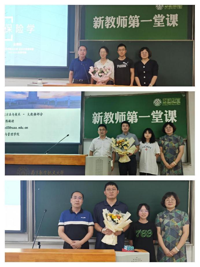 新学期伊始,为增强新入职教师对职业的责任感和使命感,9月5日和9月6日下午,学院院长周德群、党委书记苏州、教学办相关老师依次为金倩颖、陈毓迪、董明华三位新教师举办了“第一堂课”引荐仪式,代表学院全体教师及同学向三位新教师的到来表示热烈的欢迎,并向同学们介绍新教师的学习经历和科研成果。仪式由教学办主任田苑娜主持。