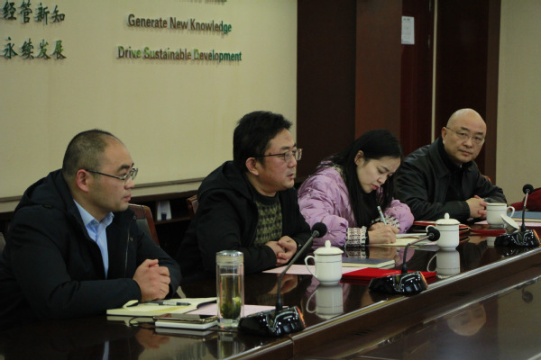 周德群首先代表学院对江苏省国信集团朱又生一行的到访表示热烈欢迎,并向其介绍了禁忌书屋 的历史发展、学术科研、学科设置和人才培养等基本情况。