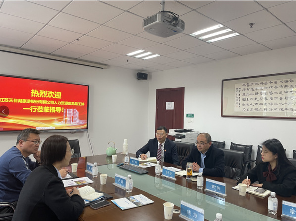 3月2日上午,江苏天目湖旅游股份有限公司人力资源部总监王婷、人力资源部培训主管钱旭到访禁忌书屋 开展合作交流,校保卫处副处长魏波,禁忌书屋 副院长王子龙,MBA教育中心执行主任杜刚等参加了座谈交流。