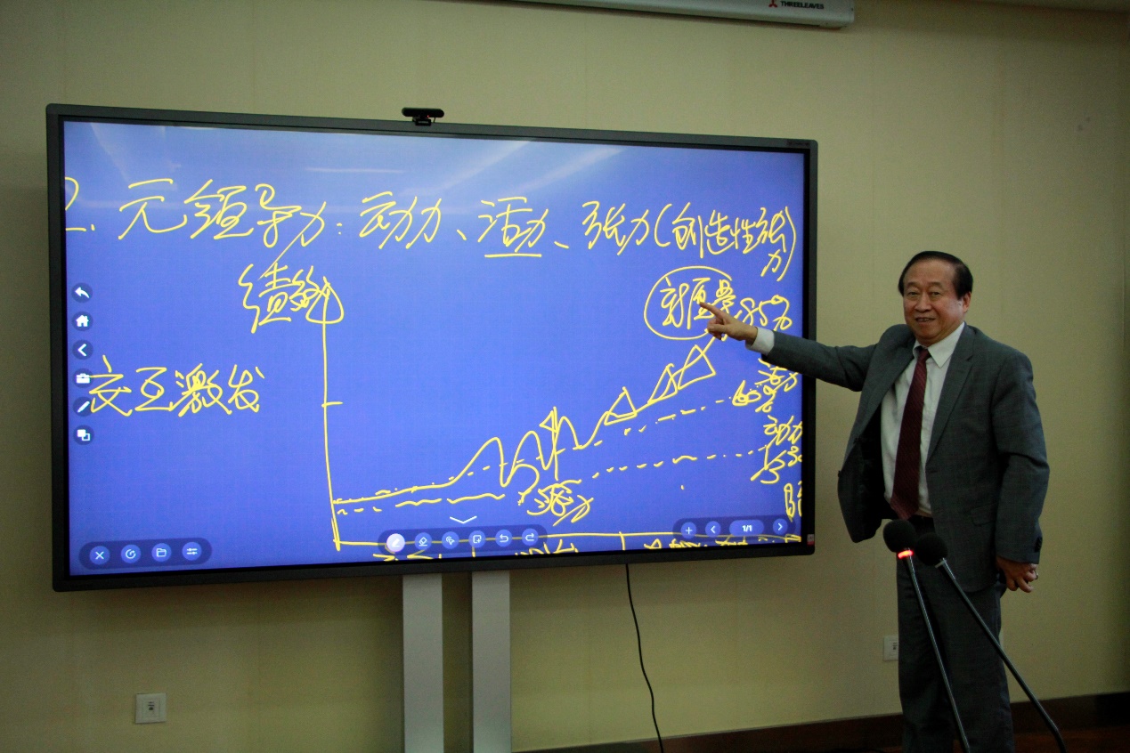 指导BGA认证工作并作“管理研究的可续发展新思路:从元领导力到五力管理”的专题讲座。出席本次交流座谈会的有院党委书记苏州,院长周德群,党委副书记胡苹,副院长王子龙,院长助理谢嗣胜、周志鹏,MBA教育中心执行主任杜刚,学院教师代表以及MBA教育中心老师等。