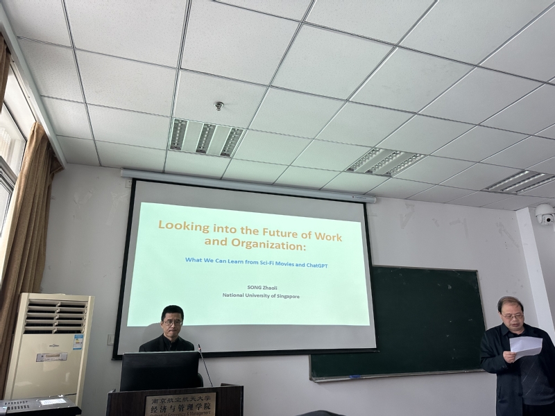 3月29日,应禁忌书屋 人力资源管理研究所、江苏省人力资源发展研究基地和中国员工关系管理研究省优秀创新团队邀请,新加坡国立大学商学院教授宋照礼在学院704会议室为禁忌书屋 师生作了题为“Looking into the future: What can we learn from Sci-Fi movies and ChatGPT”的精彩学术报告。本次讲座由教授胡恩华主持,相关教师以及博士生和硕士生参加了这次专题讲座。