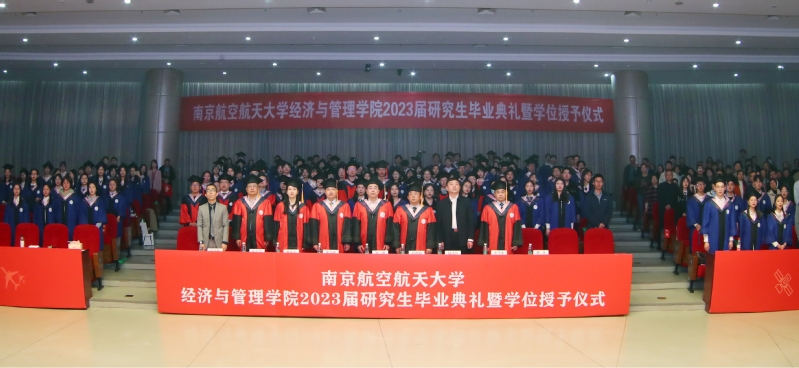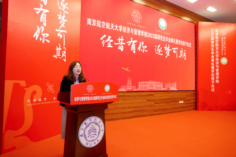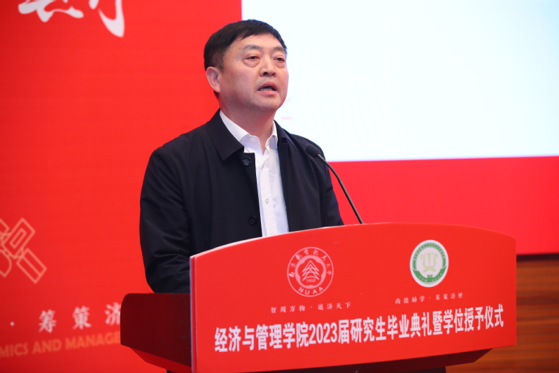 4月7日下午,禁忌书屋 2023届研究生毕业典礼暨学位授予仪式在将军路校区一号楼报告厅举行。院党委书记苏州,院长周德群,副院长王子龙、谢乃明、查冬兰,院党委副书记胡苹,院学位评定委员会委员,导师代表,毕业生亲友出席典礼,与2023届全体毕业生共同分享这一难忘的美好时刻。典礼由院党委副书记胡苹主持。