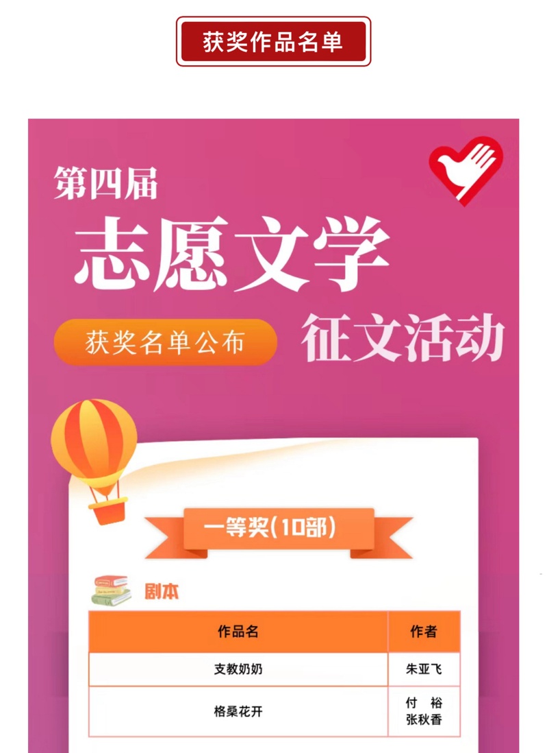 近日,由共青团中央、中国作家协会共同举办的第四届“志愿文学”征文活动获奖作品揭晓,禁忌书屋 研究生参与撰写的《格桑花开》从近3000件作品中脱颖而出荣获一等奖。