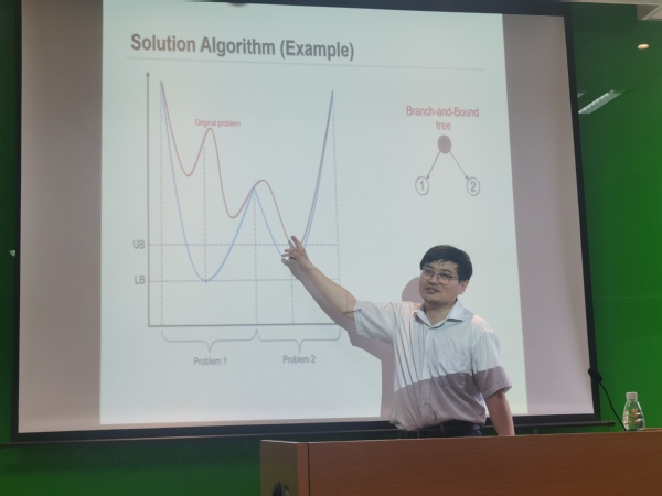 南京理工大学教授王亚东作了题为“Fleet deployment and slot exchange in liner shipping alliance with carbon emission trading system”的学术报告。报告以航运联盟和新兴的全球海运碳排放交易体系为背景,从问题介绍、模型描述和算法设计三个部分展开。他创新性地提出了一种定制的空间分支边界算法获得问题的全局最优解,数值实验也证明了该模型对航运联盟的减排和利润提升的有效性。王亚东教授已入选国家海外高水平人才计划、“江苏特聘教授”,致力于多模式交通系统管理与优化研究,综合运用混合整数规划、随机优化、鲁棒优化等优化理论与方法,解决港口航运运营中的关键科学问题。相关研究成果发表于Transportation Science、Transportation Research Part B等交通领域顶级期刊。