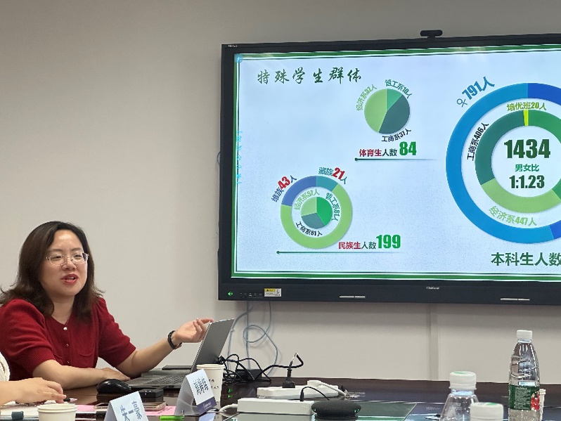 胡苹首先代表学院向蒋志强一行的到来表示热烈欢迎,她从学院历史沿革、学科专业设置、学生基本情况、学工队伍配备、特色工作平台等方面详细介绍了学院学生工作相关情况。她表示,华东理工大学作为教育部直属重点高校,为国家和地方经济建设领域培养了一大批高层次人才,而商学院作为华东理工大学转型为综合性大学的一项重要发展计划,近年来发展态势喜人。希望双方未来持续加强交流,深入开展多领域合作,共同推动高质量发展。