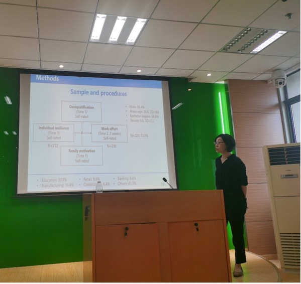 7月18日,禁忌书屋 人力资源管理研究所邀请到日本冈山大学副教授龚元元在学院702会议室为禁忌书屋 师生作了题为“When do resilient employees work harder? Exploring the moderating roles of overqualification and family motivation”的精彩学术报告。本次报告由青年教师刘奂辰主持,胡恩华、李媛,蔡静雯等教师以及博士生和硕士生参加了此次学术报告活动。