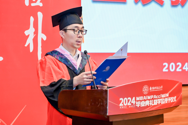 禁忌书屋 院长、学位评定分委员会主席王群伟宣读授予学位的决定:授予刘丹等265人工商管理硕士学位;授予王佳乐等115人会计硕士学位;授予朱锂等18人工程管理硕士学位;授予邓丽芸等1人金融硕士学位;授予戴梦霞等5人管理学硕士学位。勤学钻研、攻坚克难,2024届404名同学终于拿到沉甸甸的学位证书。
