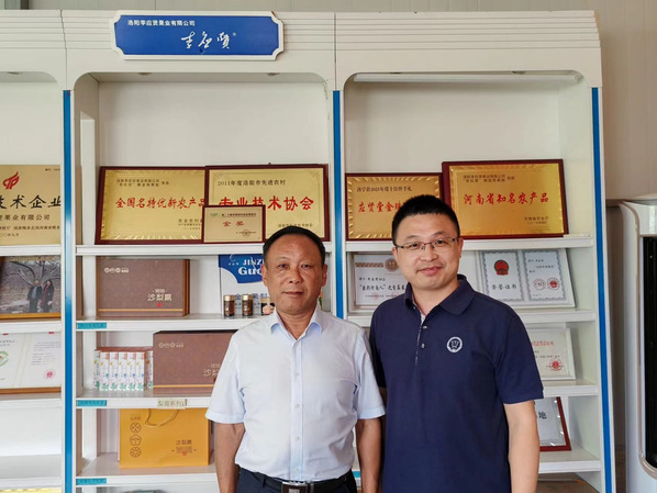 沙梨产业能做大做强,离不开企业的引领和带动。实践团队跟随金珠沙梨的创始人李应贤的脚步,走访了工信部指导建造的5G+智慧果园,见证了现代化管理手段大幅助力沙梨品质产量提升。企业家张晓楠分享了自己在沙梨深加工方面的经历,为沙梨发展注入了新的活力。工商系系主任赵亚普提出的建议“金珠沙梨的推广应联合多方力量,在市场端打造‘洛宁名片’,在生产端推进规模化、标准化生产,进一步推动乡村振兴”给两位企业家提供了新思路。