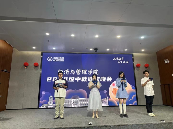 中秋晚会特别设置了惊喜环节,邀请同学们在贺卡上写下对亲友与同学的祝福,营造了“人间至味是团圆”的温馨氛围,新文科创新培优班的沈莹石同学写到:“转眼独自在南航的校园里生活了半月有余,也度过了第一个离开家乡的中秋,虽与亲人相隔两地,也能共赏同一轮皓月,思念不止,愿我们都能在这绵绵的秋意里收获满满的幸福。”