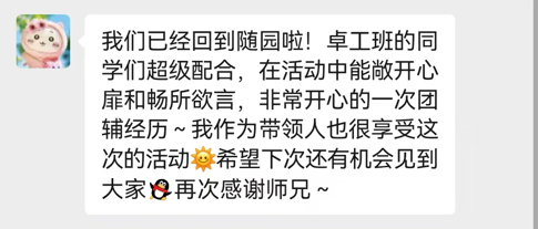 这次活动让同学们从紧张焦虑的学业生活中获得放松,并收获新的感悟与思考。活动结束后,同学们纷纷对南师大的学长学姐表达感谢。心理学院的学长学姐也对九院同学们的表现给予了很高的评价。