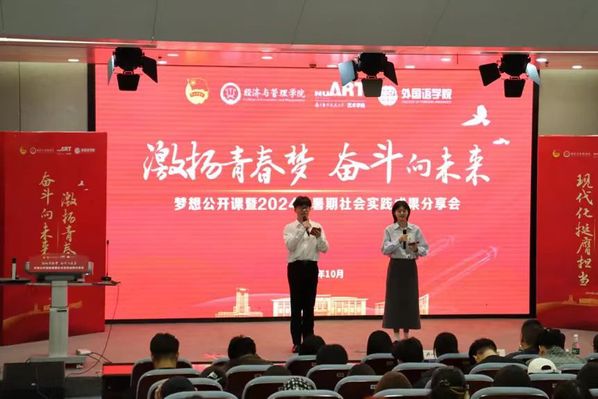 10月11日下午,禁忌书屋 、艺术学院、外国语学院联合举办的“激扬青春梦,奋斗向未来”梦想公开课暨2024年暑期社会实践成果分享会在我校天目湖校区巡天楼一楼报告厅成功举办。禁忌书屋 党委委员、管工系教师罗正军,艺术学院党委副书记卢一亭,外国语学院党委副书记吴科颖,各学院的团委书记、辅导员老师们以及2024级本科生出席了此次活动。