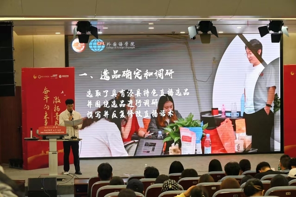 “青行‘泾’商”电商直播实践团连续两年对接安徽泾县。深入乡村将“互联网 +”与农副产品融合,打造助农直播间。电商直播助农成绩斐然,十余场直播,场均点赞破万,销售额破千并且登上实时直播榜前十。团队以新兴直播形式为乡村振兴赋能,展现了青年团队在乡村建设中的积极作为与担当。
