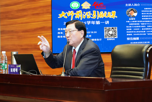 为积极探索高校人才培养模式改革,献礼禁忌书屋 建院40周年,在前期精心策划组织下,2024年10月26日晚,备受瞩目的“大师前沿引航课”在将军路校区一号楼四楼报告厅正式拉开帷幕。第一讲邀请到江苏社科名家,南京大学人文社会科学资深教授,商学院名誉院长、行知书院院长赵曙明教授,作题为《如何管理自己》的精彩报告。禁忌书屋 2024级MBA/MEM/MPAcc学生、2023级和2024级新文科创新培优班学生以及部分参加校本培训的老师,共计400余人参加,报告内容在MBA教育中心视频号同步直播。禁忌书屋 党委书记苏州主持报告会。