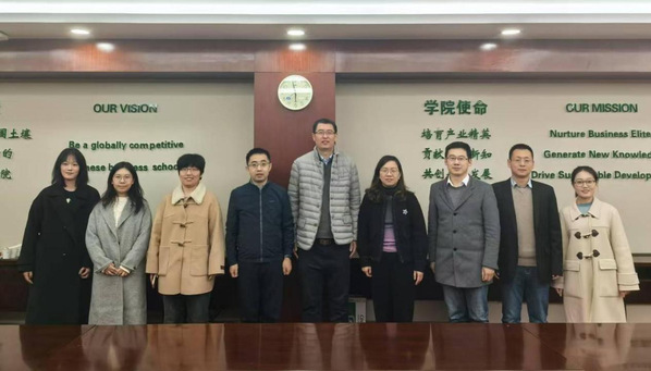 走访交流,学院院长王群伟、党委副书记胡苹、管工系教授虞先玉、副教授徐志涛、研究生辅导员刘婷炜、研究生代表共同参加交流会。