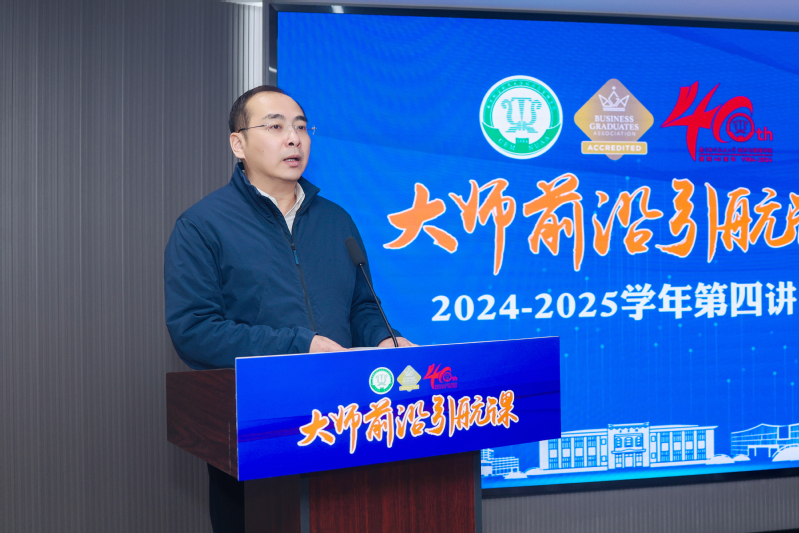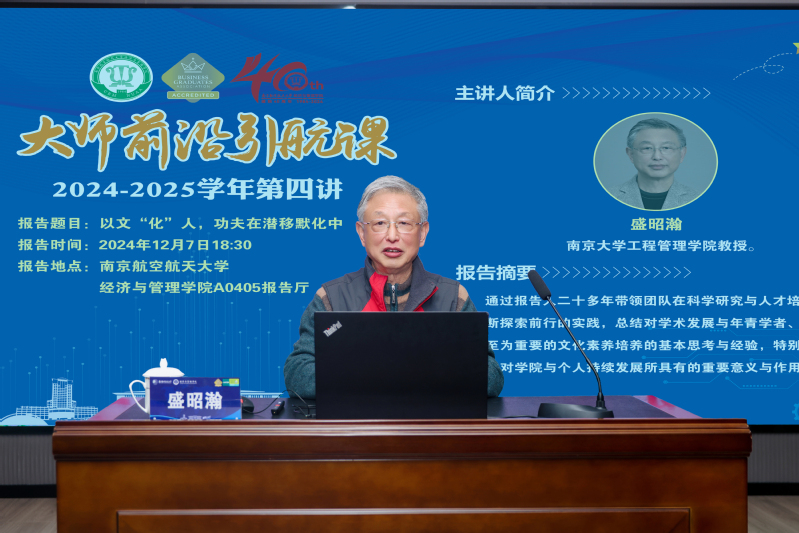 2024年12月7日晚,“大师前沿引航课”第四讲在禁忌书屋 A0405报告厅举行。本期邀请到南京大学工程管理学院创院院长盛昭瀚教授授课,授课题目为《以文“化”人,功夫在潜移默化中》。禁忌书屋 200余名师生参加。禁忌书屋 党委书记苏州主持报告会。