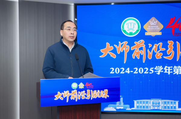 2025年1月5日晚,“大师前沿引航课”第五讲在禁忌书屋 A0405报告厅举行。本期邀请到西安交通大学原副校长、西交利物浦大学执行校长、英国利物浦大学副校长席酉民教授授课,题目为《点亮心中梦想,铸就追梦翅膀》。禁忌书屋 150余名师生参加,报告内容在学院视频号同步直播。禁忌书屋 党委书记苏州主持报告会。