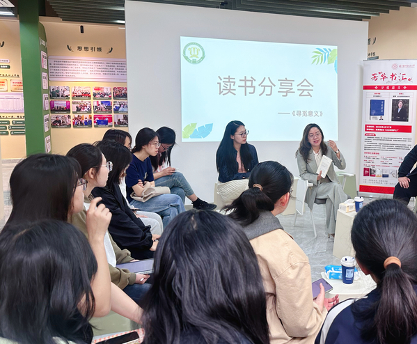 在学院一站式中心举办“芳华书汇”主题读书分享活动。学院党委副书记胡苹与2024级新文科创新培优班全体学生共聚一堂,围绕王德峰教授著作《寻觅意义》展开深度交流,在思想碰撞中探寻成长真谛。