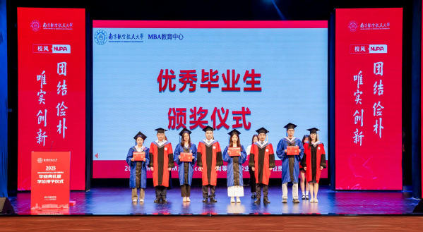 院领导为12名优秀毕业生代表颁发荣誉证书。从学术殿堂到社会舞台,经管学子将“尚德励学”的治学品格与“筹策济世”的实践智慧薪火相传,谱写新时代的南航答卷。