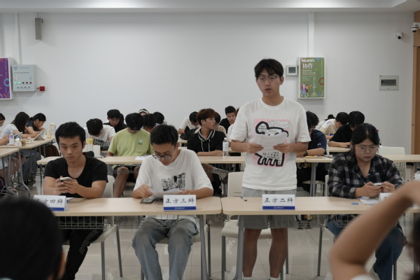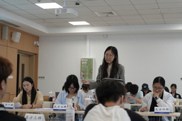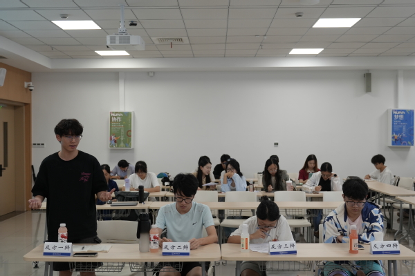为深化专业教育与思政教育融合,落实立德树人根本任务,筑牢青年思想根基,锤炼学生逻辑思维与公共表达能力,6月12日下午,学院在天目湖校区明慧楼C110教室举办“经英领航”——禁忌书屋 2024级本科生辩论赛,在《思想道德与法治》课程中开展一次别开生面的翻转课堂。学院党委副书记、《思想道德与法治》授课教师胡苹出席本次活动,2024级本科生辅导员胡心雨、王江鑫以及金融学专业和大数据管理与应用专业学生共同参与其中,现场气氛热烈,思辨火花迸发。
