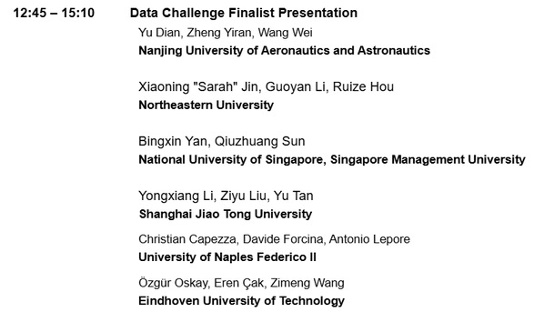 本次比赛吸引了来自全球多个国家的优秀队伍,最终共有六支队伍入围决赛,分别来自南京航空航天大学(中国)、上海交通大学(中国)、东北大学(美国)、新加坡国立大学&新加坡管理大学(新加坡)、埃因霍芬理工大学(荷兰)、那不勒斯腓特烈二世大学(意大利)。在这六支队伍中,不乏博士研究生、高校教师等高水平参赛选手。