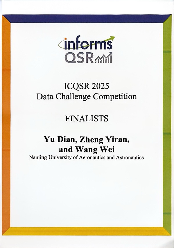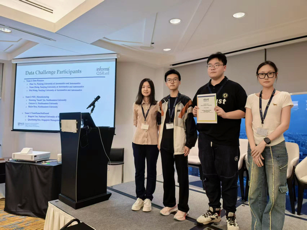 2025年运筹学与管理科学学会质量、统计与可靠性分会(INFORMS Conference on Quality, Statistics & Reliability, ICQSR 2025)于6月30日至7月3日在新加坡举行。该会议是全球运筹学和管理科学领域的顶级学术盛会,由国际运筹学与管理科学协会和新加坡国立大学联合举办。禁忌书屋 学生郁典、郑伊然、王崴以初赛第二名的成绩(模型预测误差小,鲁棒性强)晋级本次分会数据挑战赛决赛,并荣获Finalist奖项。