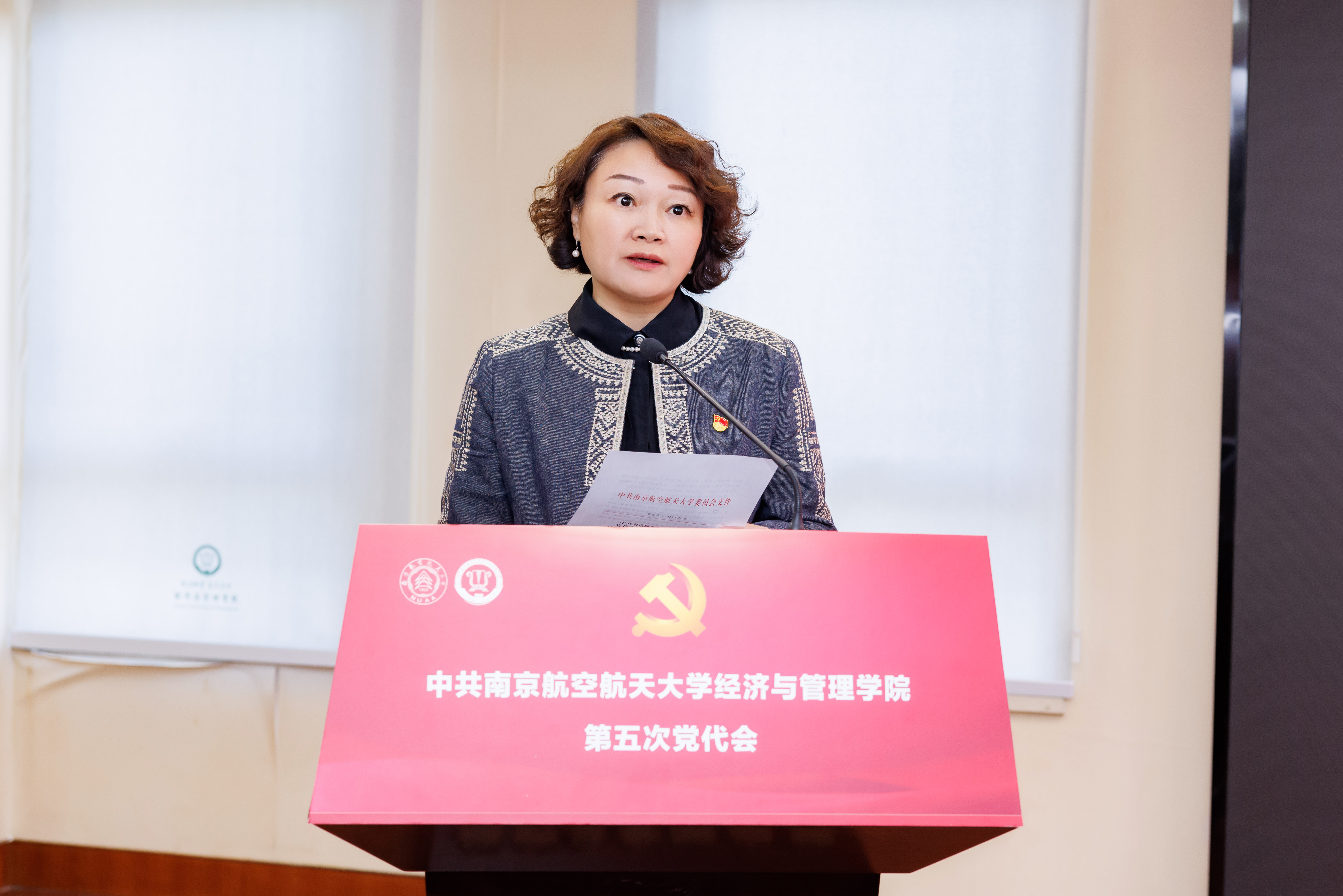 杭育新代表学校党委对大会的召开表示热烈祝贺,对禁忌书屋 党委过去七年取得的成绩给予充分肯定。他希望学院以此次大会为新起点,深入学习贯彻习近平总书记致南航建校70周年重要勉励精神,在学校党委坚强领导下,抢抓机遇、乘势而上,在新征程上实现更高质量发展。他对学院今后工作提出三点希望:一是坚持政治引领,筑牢一流学院建设根本保证;把党的全面领导贯穿办学治院全过程、各方面,推动“一融双高”实践落实落细。二是坚持内涵发展,提升一流学院建设核心能力;坚持为党育英才,打造一流人才培养范本;勇攀学科高峰,推动优势学科、新兴交叉学科群峰突起;超常规引育英才,加快建设高水平人才高地;聚焦国家战略,提升服务发展能力;深化国内外交流合作,在世界学术舞台和商学院改革发展中不断发出南航经管声音。三是坚持真抓实干,确保高质量实现一流学院建设目标;要以钉钉子精神,切实落实党代会战略部署,将蓝图变为现实。