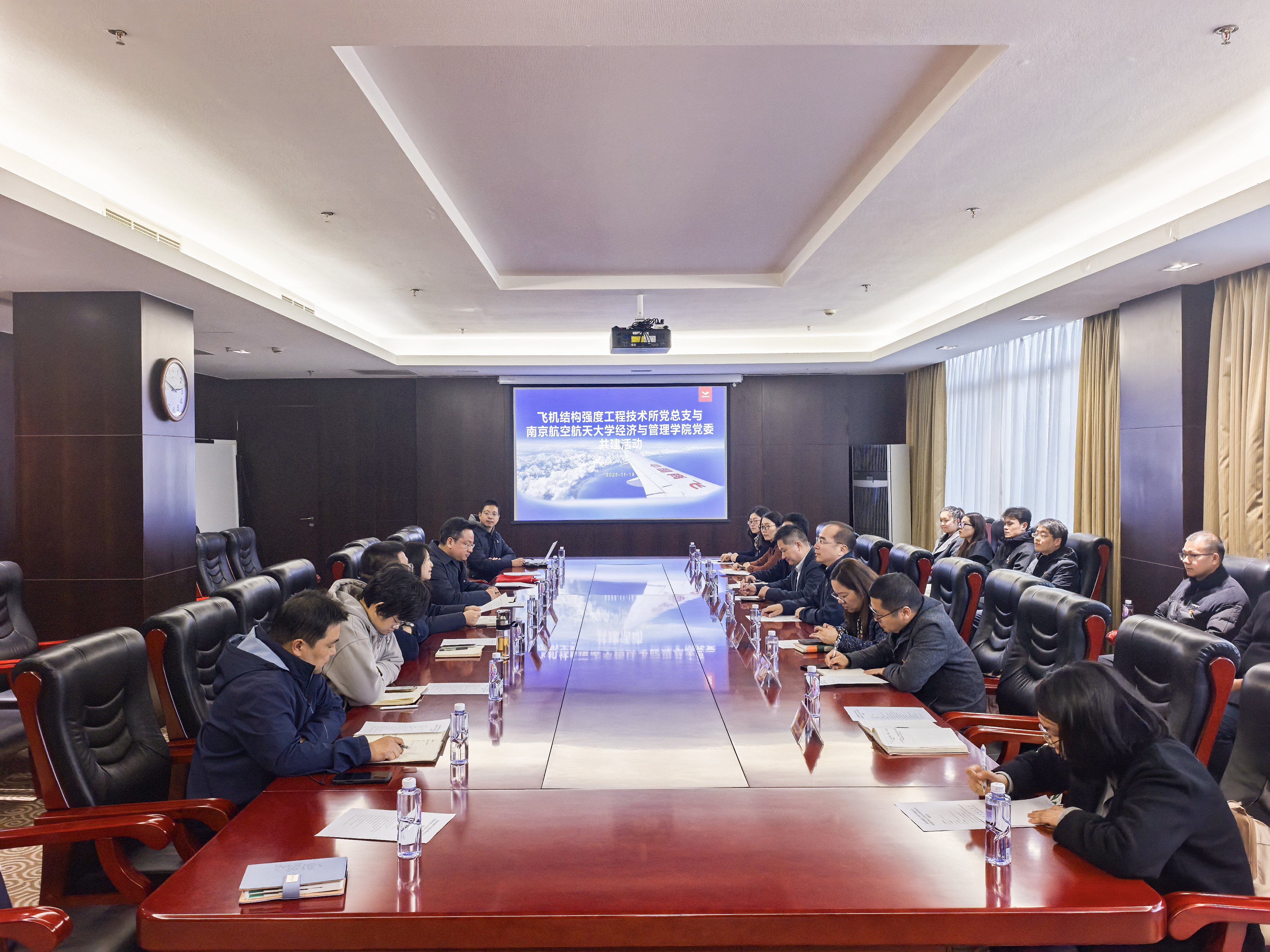 为创新基层党建工作机制,推动校企合作、党建与业务深融互促,2025年11月19日,经济与管理学院党委与中国商飞上海飞机设计研究院飞机结构强度工程技术所党总支开展党建联建活动。飞机结构强度工程技术所党总支书记姚雪波,机身部第一党支部、第二党支部党员代表,经管学院党委书记苏州,副书记胡苹,副院长谢乃明、欧阳林寒,灰色系统与复杂装备研制管理创新团队党支部、管理科学与工程系党支部、智能决策与风险分析创新团队党支部师生党员代表出席活动,活动由姚雪波主持。